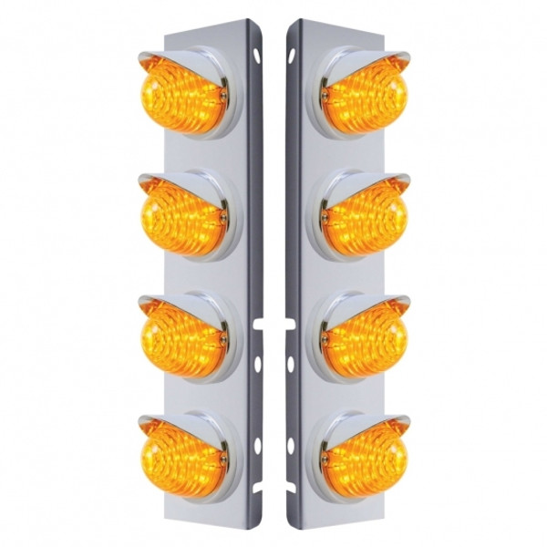 SS Front Air Cleaner Bracket With 8X 17 Amber LED Beehive Lights & SS Visors For Peterbilt -Amber Lens