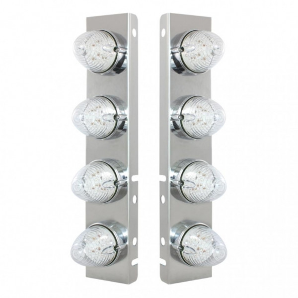 SS Front Air Cleaner Bracket With 8X 19 LED Beehive Lights & Bezels For Peterbilt-Amber LED & Lens
