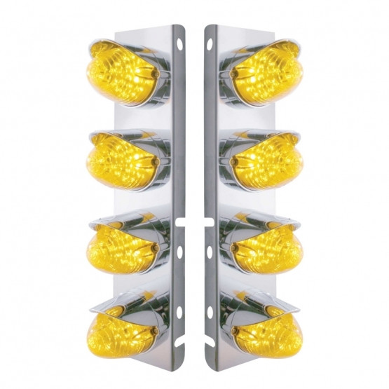 SS Front Air Cleaner Bracket With 8X 19 LED Beehive Lights & Visors For Peterbilt-Amber LED/Clear Lens