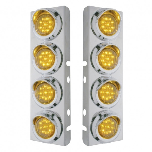 SS Front Air Cleaner Bracket With 8X 9 LED 2" Lights & Visors For Peterbilt-Amber LED/Clear Lens