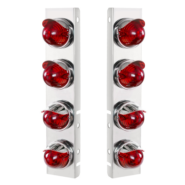 SS Front Air Cleaner Bracket With 8X Glass Beehive Lights & SS Visors For Peterbilt-Dark Amber Lens