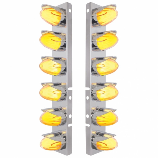 SS Front Air Cleaner Brkt With 12X Amber Hi/Lo LED GloLight Watermelon Grakon Light & Visor For Peterbilt-Amber Lens