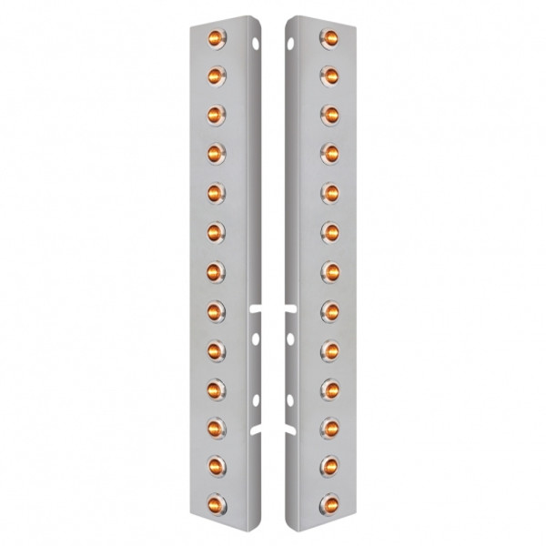 SS Front Air Cleaner Bracket With 26X 3 Amber LED Dual Function Mini Lights & SS Bezels For Peterbilt-Amber Lens