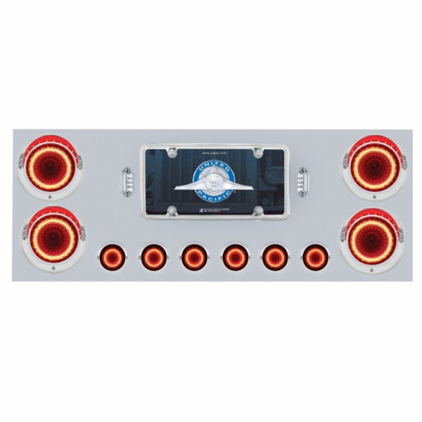 34" stainless steel rear center light panel with four 4" and six 2" LED light. High polished 430 stainless steel finish for durability and shine. Rear center panel with enclosed back plate available...