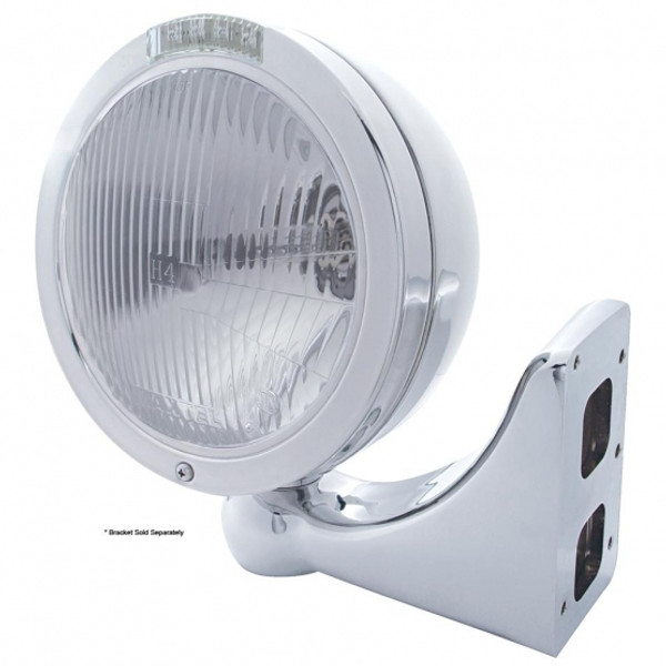 Stainless Steel Bullet Classic Headlight Crystal H4 Bulb & LED Turn Signal - Clear Lens