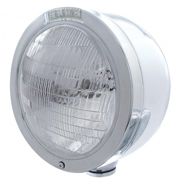 Stainless Steel Bullet Half Moon Headlight 6014 Bulb & LED Turn Signal - Amber Lens