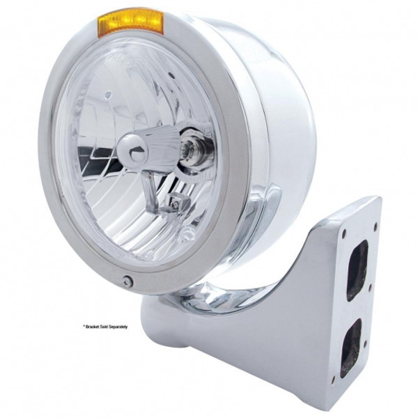 Stainless Steel Bullet Half Moon Headlight H4 Bulb & LED Turn Signal - Amber Lens