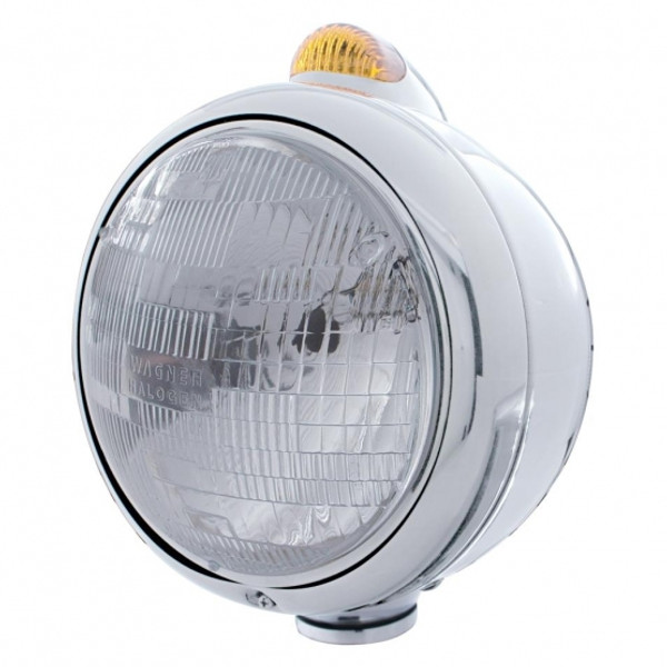 Stainless Steel Guide 682-C Headlight H6024 & Dual Mode LED Signal - Amber Lens