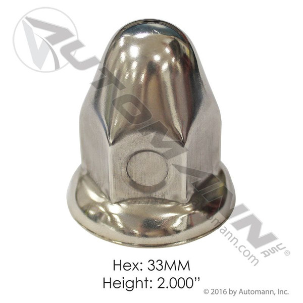- Lug Nut Cover, Stainless Steel Push On 33mm x 2in Bullet w/Flange