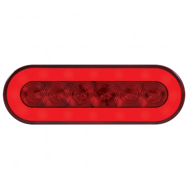 Stainless Top Mud Flap Bracket With Three 22 LED 6" Oval GloLight & Visors - Red LED/Clear Lens