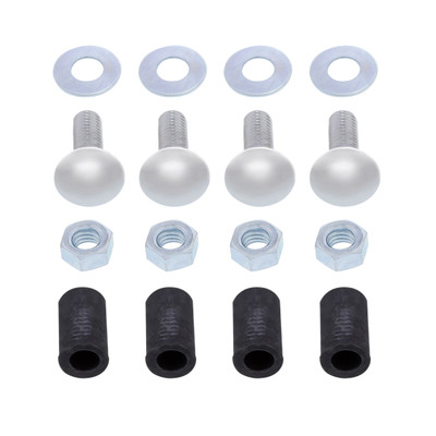Bottom plate replacement hardware kit. For bolt thru bottom plate. Hardware kit includes: 3 bolts, 3 nuts, 3 washer and 3 rubber inserts.