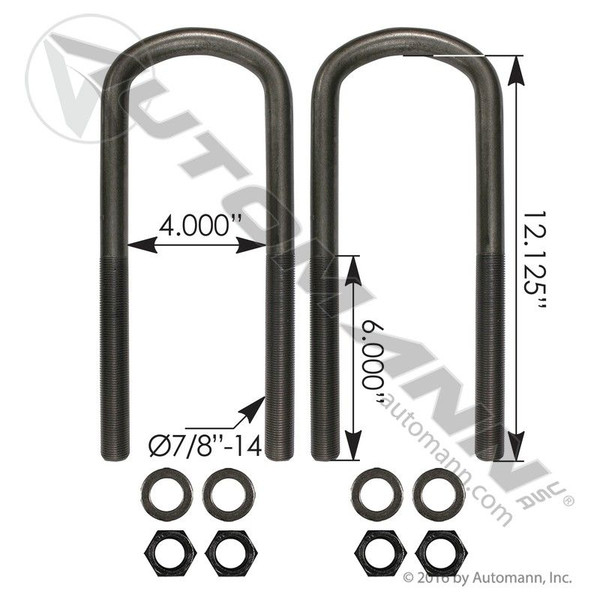 U Bolt Kit 7/8in X 4in X 12-1/8in Ford