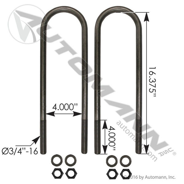 3/4in-16 x 4.0in x 13-3/8in Lg., GR8Consists of 2-U-Bolts, 4-MUBW174, 4-DN4