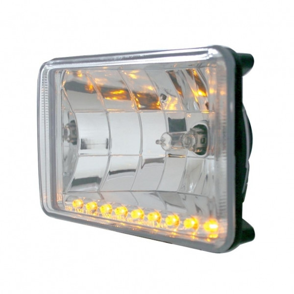 ULTRALIT - 4" X 6" Crystal Headlight With 9 Amber LED Position Light - High Beam