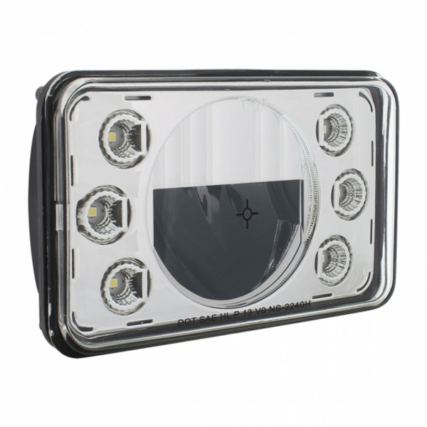 ULTRALIT - 4" X 6" Rectangular LED Crystal Headlight With 6 White LED Position Light - High Beam