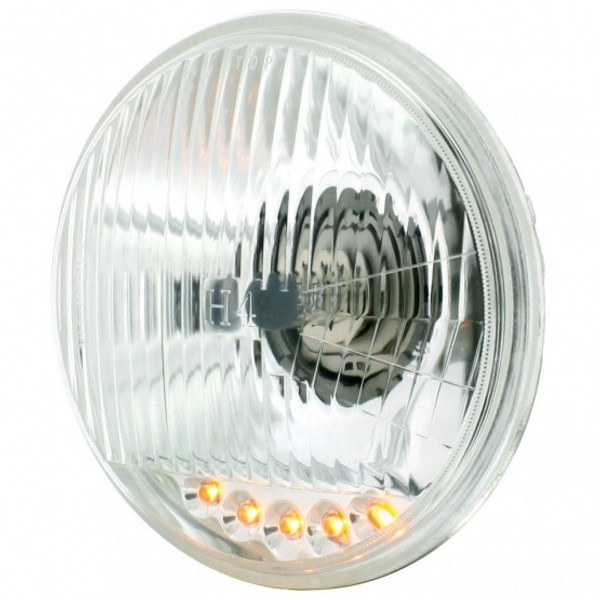 Reinforced multi-surfaced aluminum reflector housing. Aluminum reflector, anti-vibration structural design. H4/HB2/9003 halogen bulb: 12V 65/55w, replaces H6017/H6024. Features 34 amber LED position...