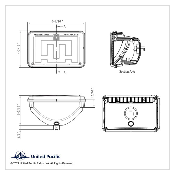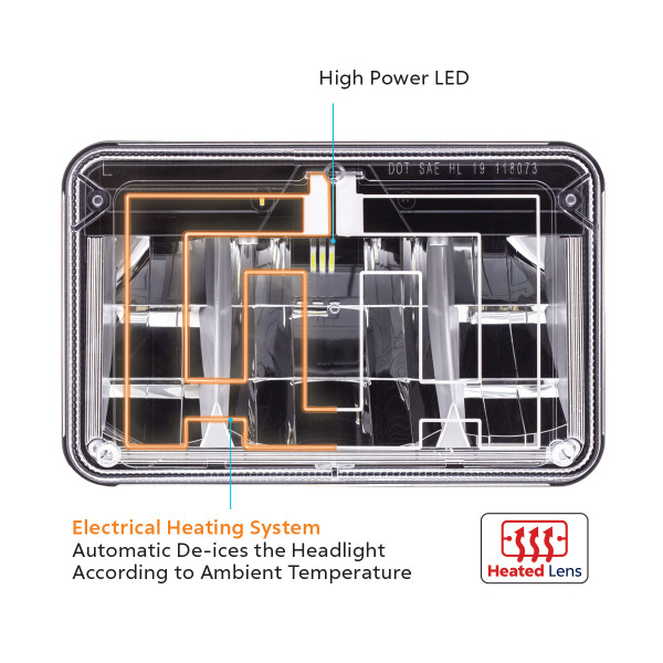 ULTRALIT - Heated 4" X 6" LED Headlight High Beam With Polycarbonate Lens & Housing