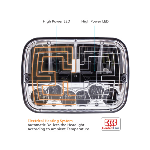 ULTRALIT - Heated 7" LED Headlight With Polycarbonate Lens & Housing