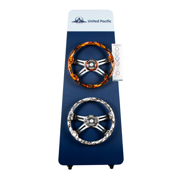 Includes steering wheels 88150 & 88217. Includes chrome flame horn bezel 88223, and chrome horn button 88120. Includes chrome standard horn bezel and chrome horn button 88261.