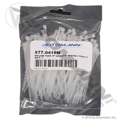 UL Approved Nylon 6/6Working Temp: -40F to 185FFlammability: UL 94V-2RoHS Compliant100pcs per pkg.4.0in Lg, 0.10in Wd, White18lbs Tensile Strength